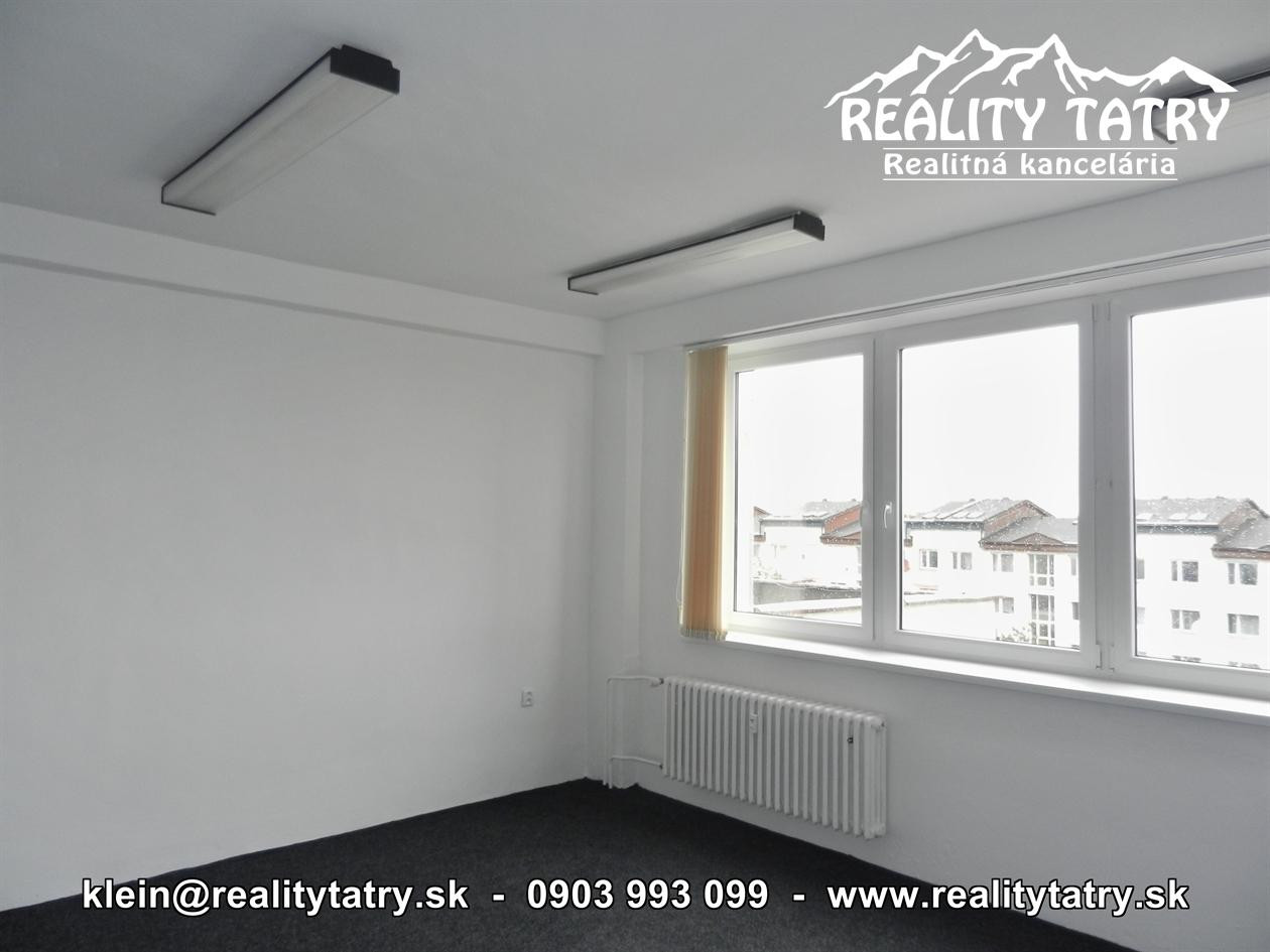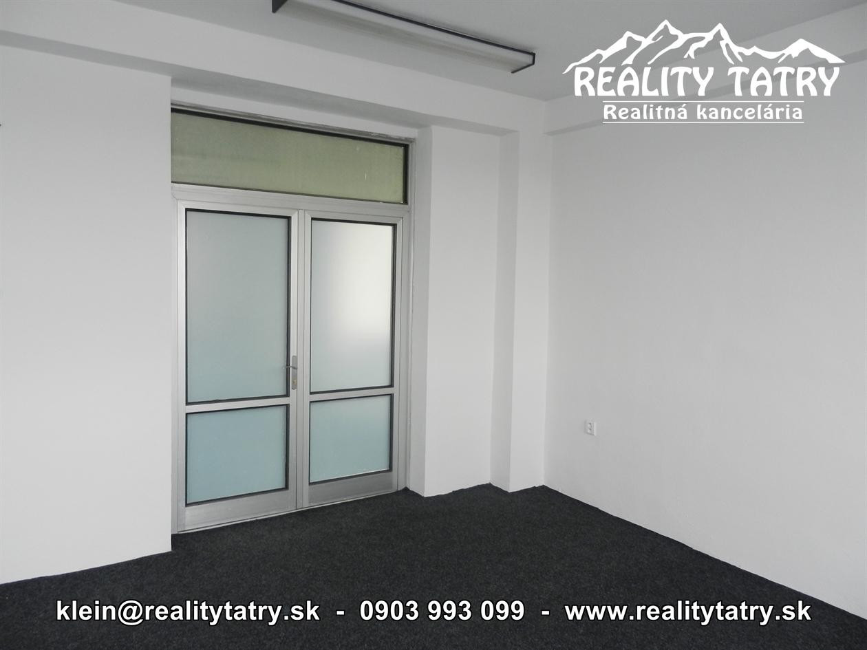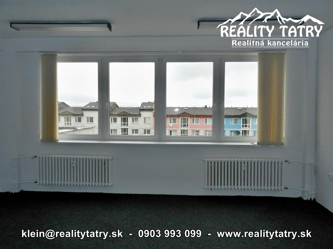 REALITY TATRY - Ponúkame na prenájom viacúčelový priestor s výmerou 36 m2. Priestor je umiestnený na II. poschodí prevádzkovej budovy s výťahom. Orientovaný je na severnú stranu s nádherným výhľadom na Vysoké Tatry. Voda nie je v tomto priestore zavedená. Sociálne zariadenie WC pánske a dámske je po rekonštrukcii priamo na poschodí priestoru. priestor je po čiastočnej rekonštrukcii, vymenené hliníkové okná za plastové a podlaha je pokrytá kobercom.